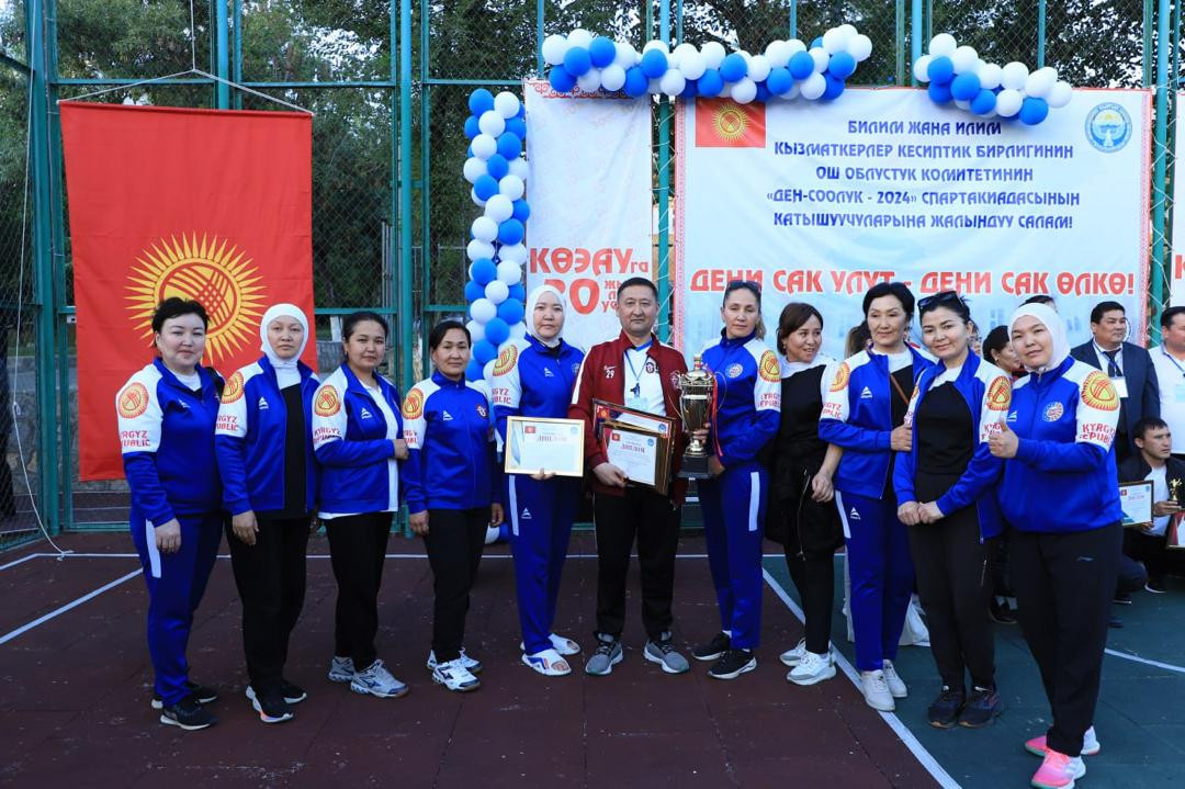 В командном зачете спартакиады работников сферы образования и науки "Здоровье-2024", проходившей в Кыргызско-Узбекском международном университете имени Б. Сыдыкова, ОшГУ занял первое место. Спартакиада организована Ошским областным профсоюзным комитетом работников образования и науки.