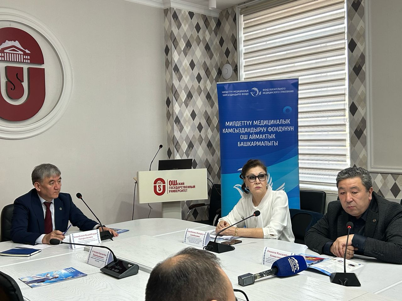 Представители фонда обязательного медицинского страхования Ошской области провели в ОшГУ встречу с руководителями вузов города. Речь шла об исполнении закона «Об обязательном медицинском страховании граждан Кыргызской Республики», вступившего в силу в 2023 году, и вопросах страхования иностранных студентов. На заседании были рассмотрены такие вопросы, как трудности вузов в оформлении страховых полисов для иностранных студентов, важность наличия у них медицинского страхования, участие учебных заведений в информационных и организационных мероприятиях по страхованию студентов. Представители фонда отметили, что университеты будут играть большую роль в распространении информации о страховании иностранных студентов. Они добавили, что медицинское страхование позволяет студентам получать своевременную медицинскую помощь, когда это необходимо, и облегчает их финансовое бремя. Они также призвали университеты продолжать работу по совершенствованию механизмов страхования иностранных студентов и активно участвовать в этом процессе.