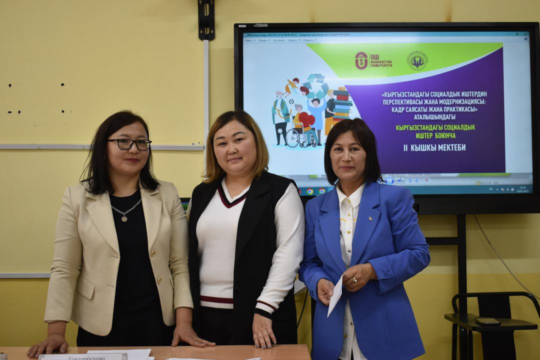 Специалисты по социальной работе из семи районов Ошской области прошли обучение с 17 по 22 марта. 72-часовой курс обучения прошел в ОшГУ. В нем были продемонстрированы научно-практические навыки, связанные с технологиями компетенций специалистов по социальной работе и инновационной практикой социальной работы. Этот курс направлен на повышение квалификации социальных специалистов, обмен знаниями и укрепление сотрудничества в отрасли. Обучение под названием” Будущее и модернизация социальной работы в Кыргызстане: кадровая политика и практика " проводилось в рамках второй зимней школы по социальной работе в стране. Его организовали кафедра социальной работы и Центр повышения квалификации Института экономики, бизнеса и менеджмента ОшГУ. По итогам курса слушатели представили свои предложения по реализации совместных проектов.