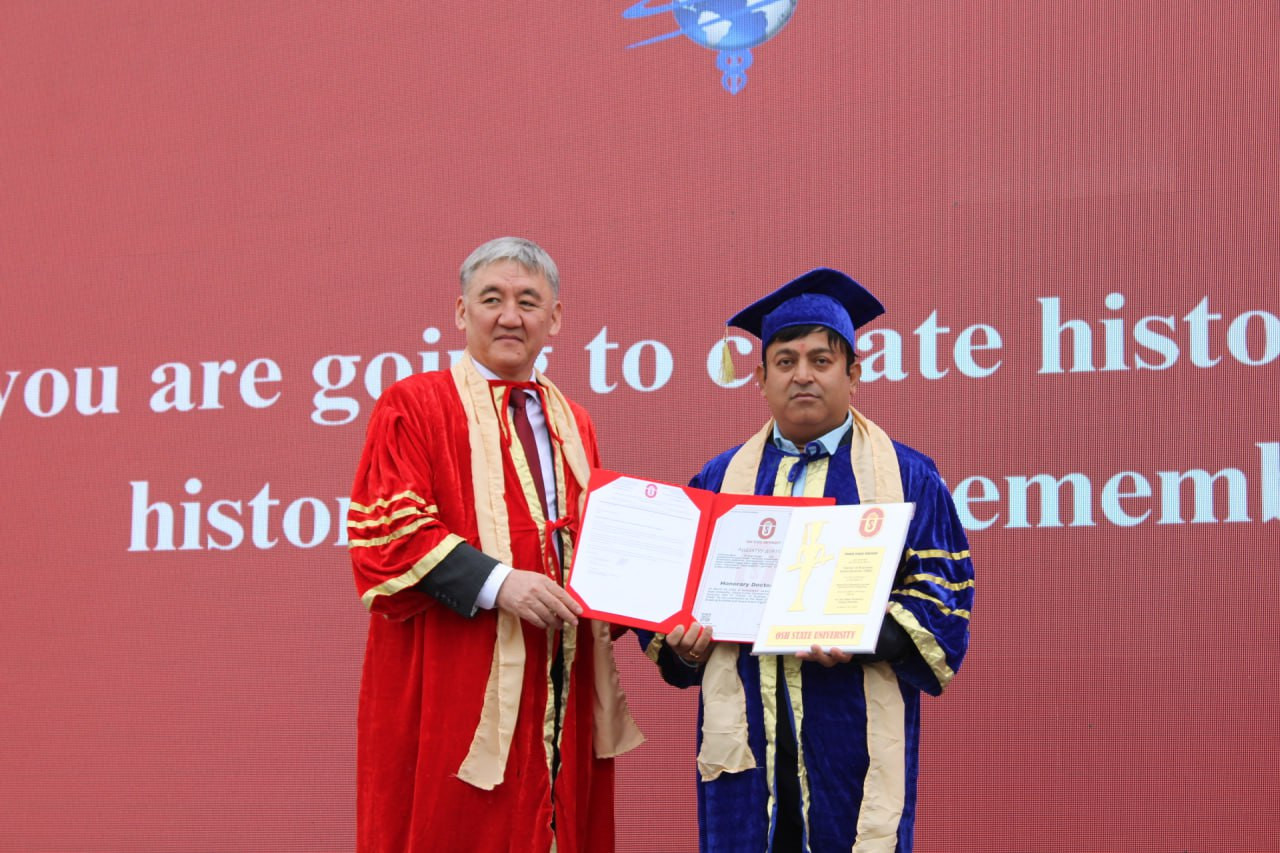 Впервые среди высших учебных заведений мира Ошский государственный университет вошел в известную индийскую книгу "Exclusive World Records". Сегодня, 24 марта, на мероприятии в Международном медицинском факультете вуза представитель организации "Exclusive World Records" вручил ректору Кудайберди Кожобекову диплом с нагрудным знаком подтверждения. При зачислении в Книгу рекордов в качестве основного критерия учитываются результаты опроса индийских студентов об учебных заведениях. В нем преобладали положительные отзывы об ОшГУ и высокие оценки. В ходе мероприятия около 4000 студентов, обучающихся на факультете международной медицины ОшГУ, были торжественно приведены к присяге. В настоящее время в ОшГУ обучается около 9000 иностранных студентов. "Exclusive World Records" - Международная книга, в которой собраны уникальные достижения и рекорды со всего мира.