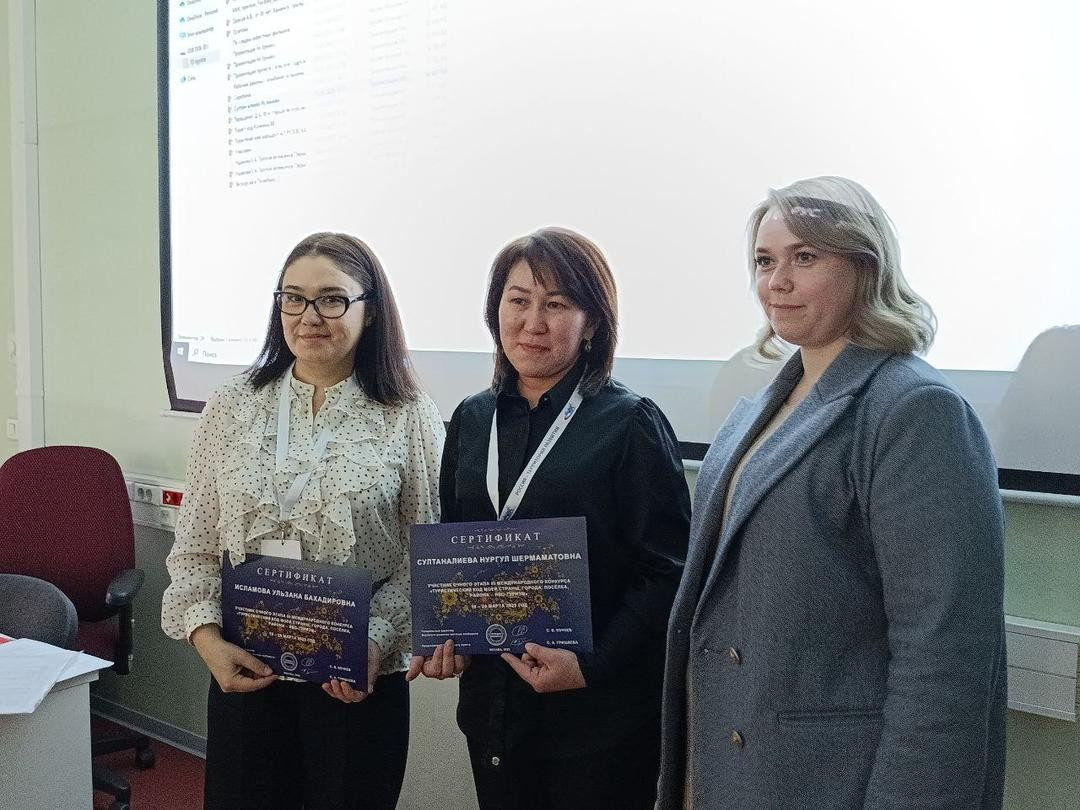 Проект преподавателей института экономики, бизнеса и менеджмента ОшГУ Нургул Султаналиевой и Ульзаны Исламовой занял третье место в международном конкурсе “Туристический код моей страны, города, села, районы – PRO Туризм”. Проект называется” Ош – главный туристический провайдер Великого Шелкового пути " и ориентирован на экскурсионный туризм. Проекты, победившие в конкурсе, направляются в местные органы власти, туристические компании в качестве предложений для реализации. Конкурс проходил в Москве с 18 по 20 марта. В нам участвовали около 900 представителей из Сербии, Узбекистана, России, Казахстана.
