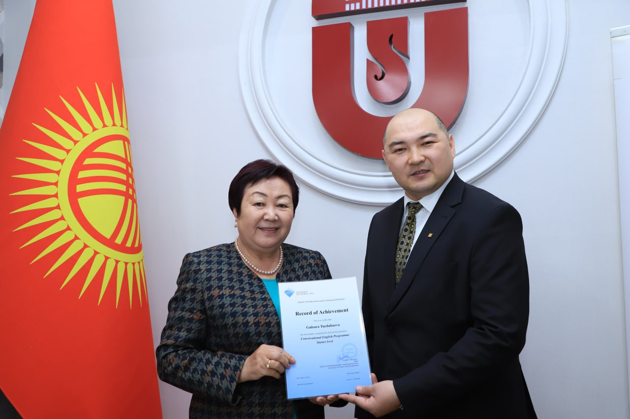 Университет Центральной Азии выдал сертификаты 24 слушателям, успешно завершившим курс” Английский язык". Церемония вручения состоялась вчера, 26 марта, в Ошском государственном университете. В мероприятии приняли участие представители министерства образования и науки, Управления образования города Ош, администрации ОшГУ и партнеры. В учебном курсе основное внимание уделялось повышению квалификации учителей английского языка, улучшению педагогической практики и развитию лидерских качеств. Он также был направлен на укрепление навыков английского языка для государственных служащих, чтобы они могли улучшить свою работу и активно участвовать в различных