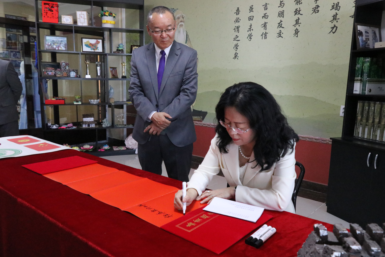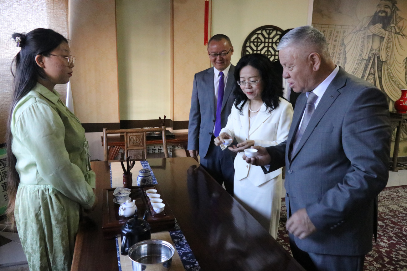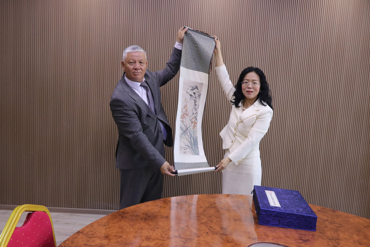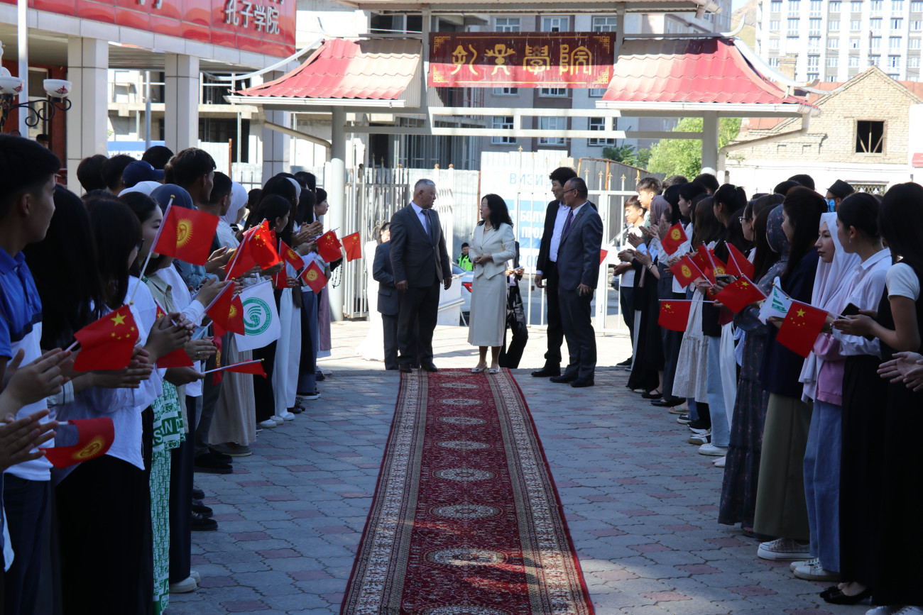 13 мая посол Китайской Народной Республики в Кыргызстане Лю Цзянпин посетила кыргызско-китайский факультет Ошского государственного университета в рамках своего первого рабочего визита на юг Кыргызстана. Высокая гостья вместе с проректором по внешним связям ОшГУ Курсантбеком Аттокуровым встретилась с коллективом института.