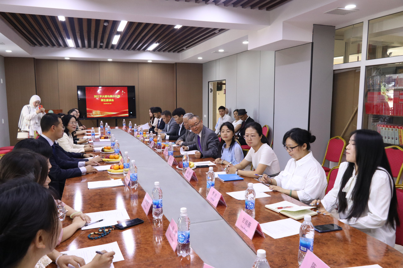 В ходе встречи посол осмотрела кампус факультета и пообщался с преподавательским составом. В своем выступлении она отметила, что Ошский государственный университет является уникальным учебным заведением и его вклад в укрепление кыргызско-китайских отношений значителен. Лю Цзянпин выразила заинтересованность в дальнейшем сотрудничестве. Посол похвалила студентов за отличный уровень владения китайским языком.