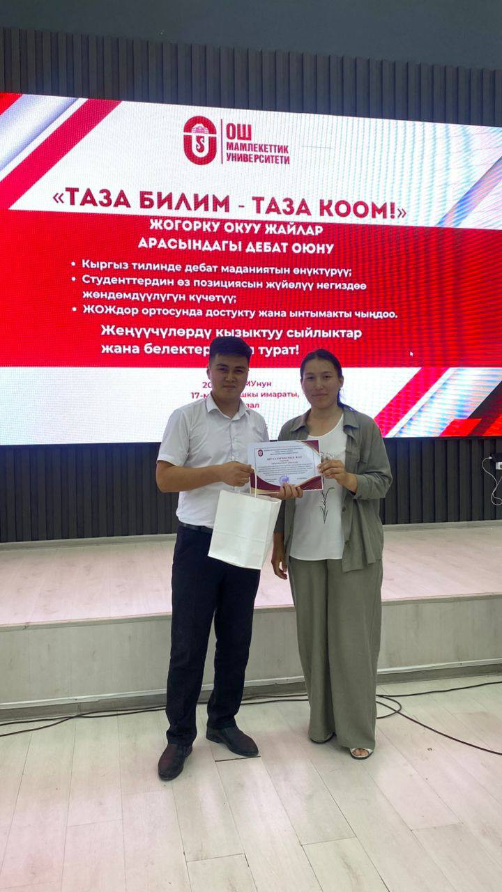Среди студентов высших учебных заведений южного региона прошел дебатный турнир «Один шаг». В мероприятии приняли участие Ошский государственный университет, Ошский технологический университет, Кыргызско-Узбекский международный университет, Баткенский государственный университет и дебатный клуб «Ордо». Всего 10 команд соревновались и обменивались идеями на тему борьбы с коррупцией.
