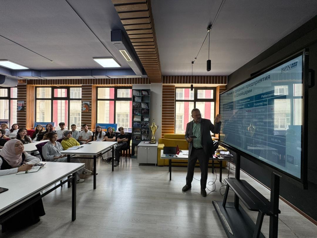 Томас Лаувинер, директор BPN Кыргызстан (Сеть бизнес-профессионалов), бизнес-эксперт из Швейцарии, прочитал студентам лекцию на тему «Как начать свой бизнес?».