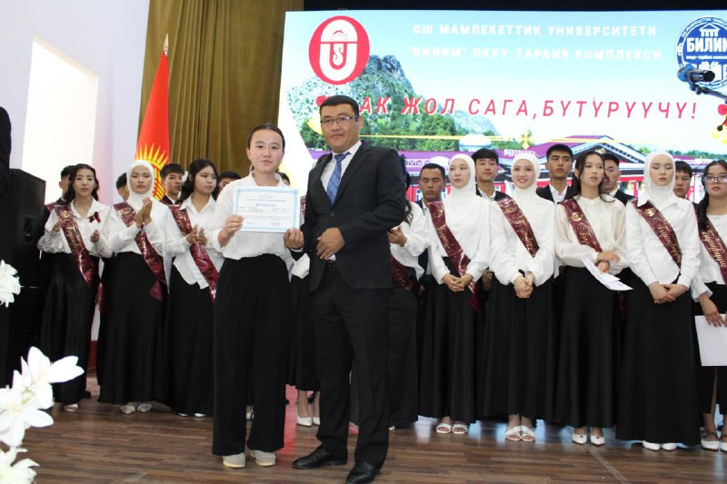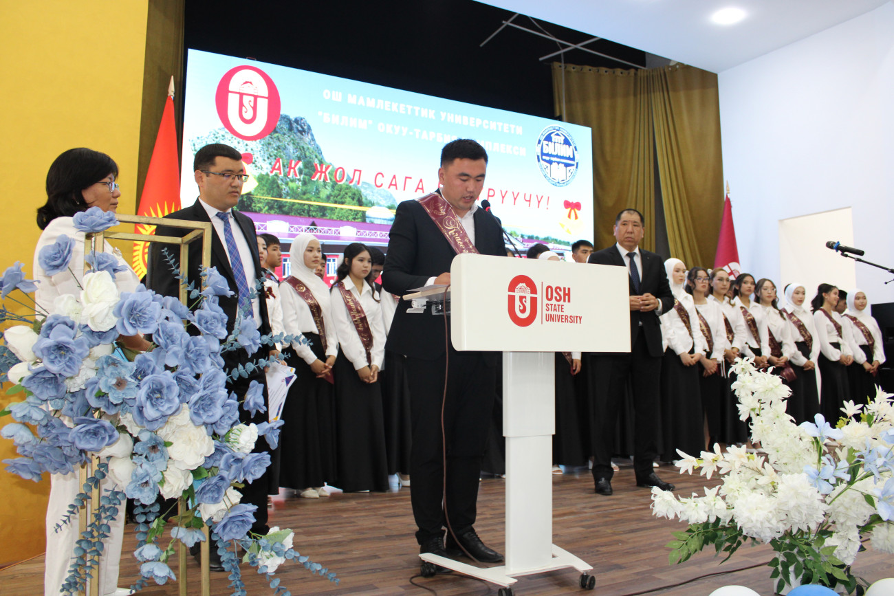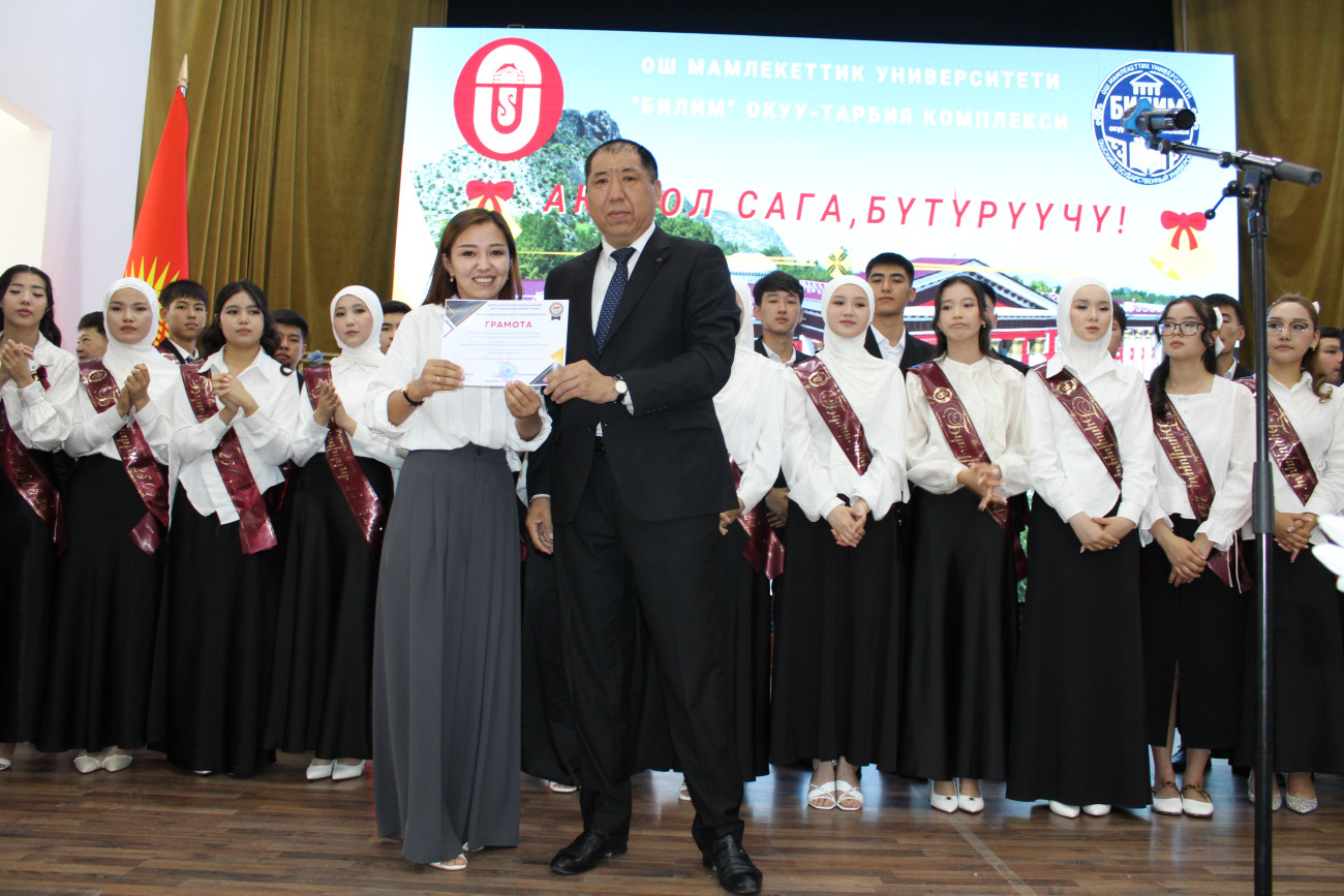 Сегодня, 26 мая, в главном корпусе Ошского государственного университета состоялись торжественные церемонии «Последнего звонка» образовательных комплексов «Билим» и «Ыйман».