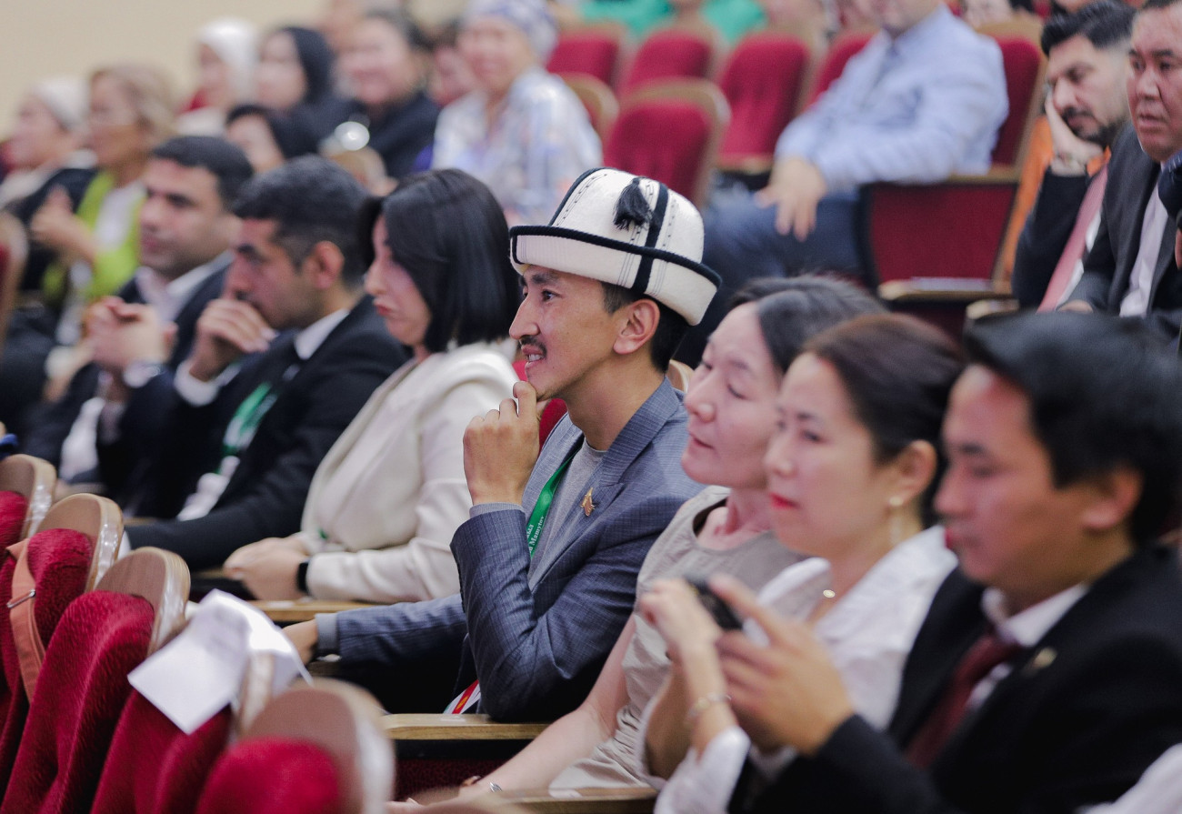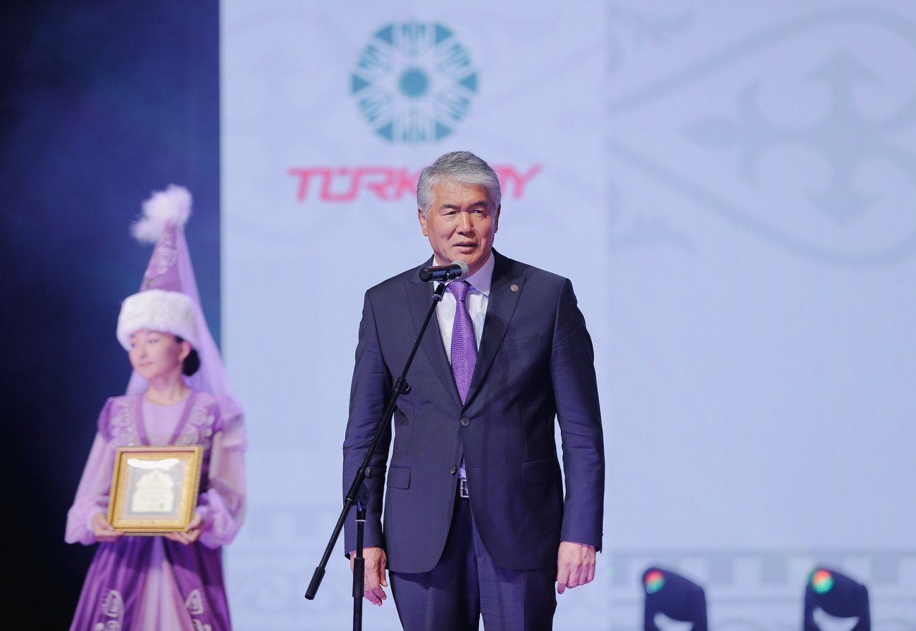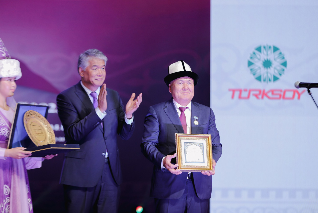 Султан Раев вручил золотую медаль международной организации ТЮРКСОЙ ректору Ошского государственного университета Кудайберди Коджобекову за всестороннюю поддержку в организации фестиваля на высоком организационном уровне.