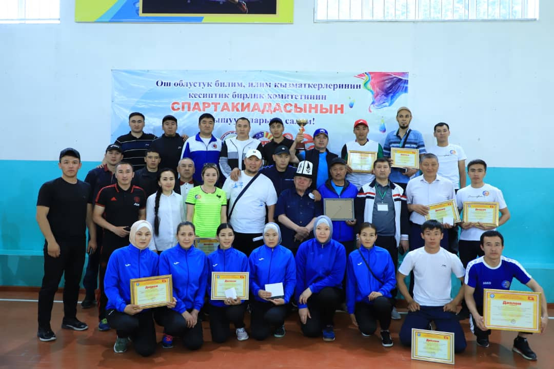 В спартакиаде работников образования и науки отраслевого обкома профсоюзов Ошской области приняли участие 5 вузов г. Ош по 7 видам спорта. В командном зачёте убедительную победу одержали женские и мужские команды ОшГУ. На втором - ОшТУ, третьем месте - КУМУ им. Сыдыкова. Поздравляем!