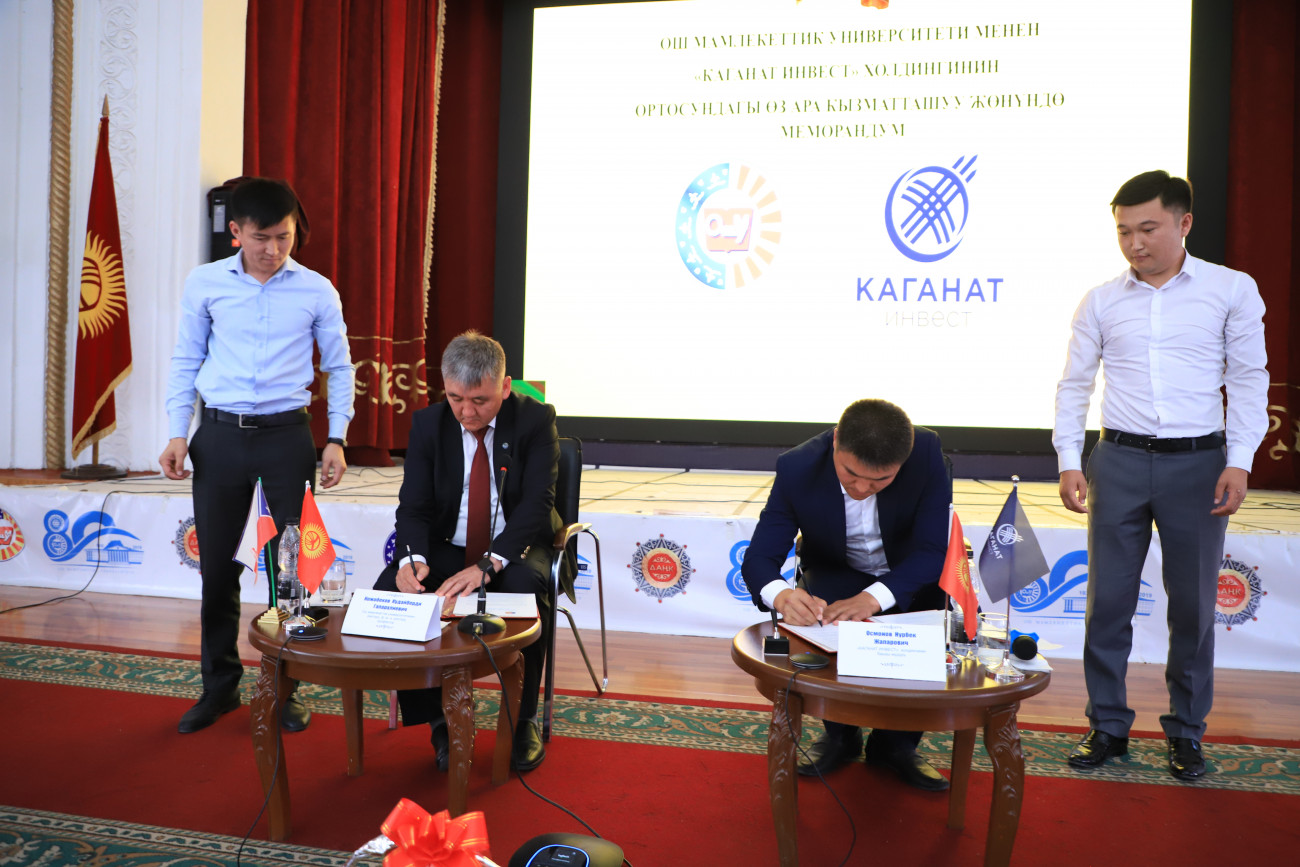 По итогам встречи был подписан меморандум о сотрудничестве ОшГУ и холдинга Каганат-Инвест”.