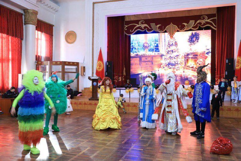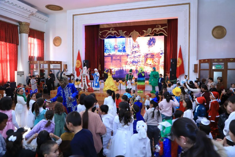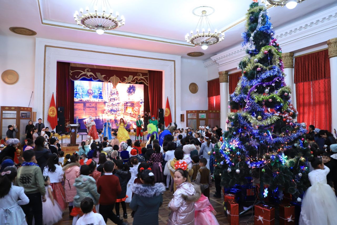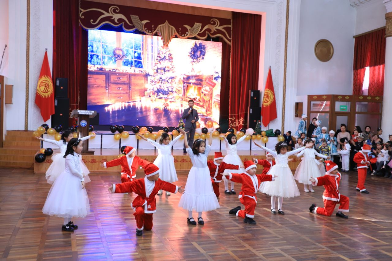 Профсоюзное объединение ОшГУ провело для детей сотрудников и преподавателей новогоднюю ёлку. На праздничном мероприятии приняли участие более 500 детей до 12 лет.