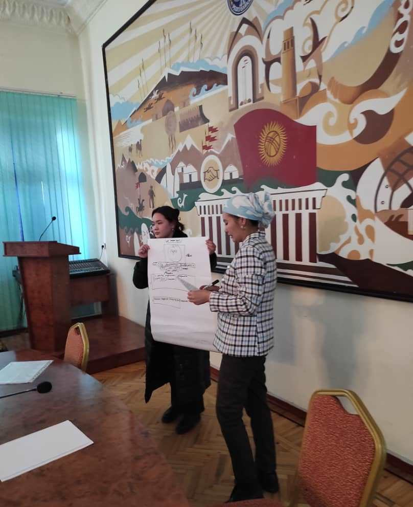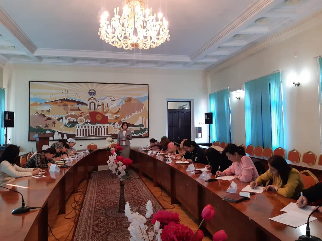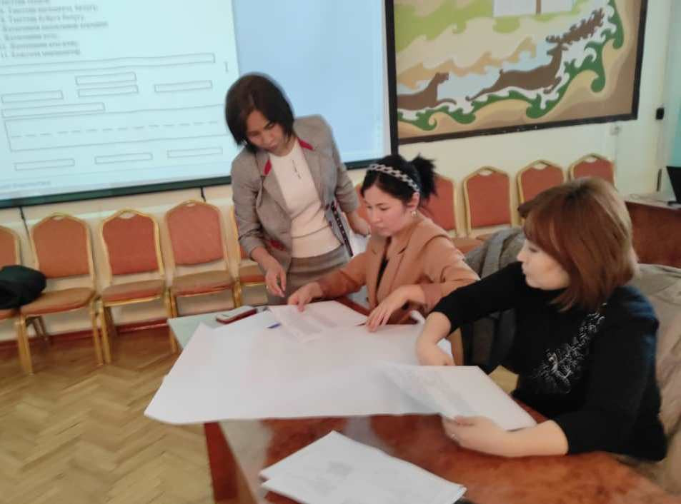 Первое занятие прошло 11 января для работников общего отдела и отдела кадров. Участники семинара получили подробную информацию, знания по орфографии написания кыргызских слов, написали словарный диктант. Для участников также были представлены презентации по оформлению деловых бумаг на государственном языке.