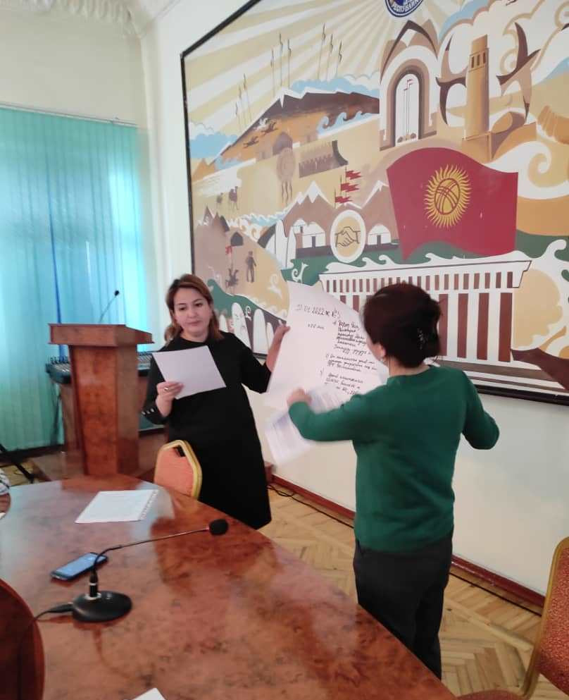В ОшГУ проходит 4-х дневный семинар по оформлению деловых бумаг на государственном языке. Мероприятие организовано по инициативе проректора по социальной работе и госязыку М. Шариповой.