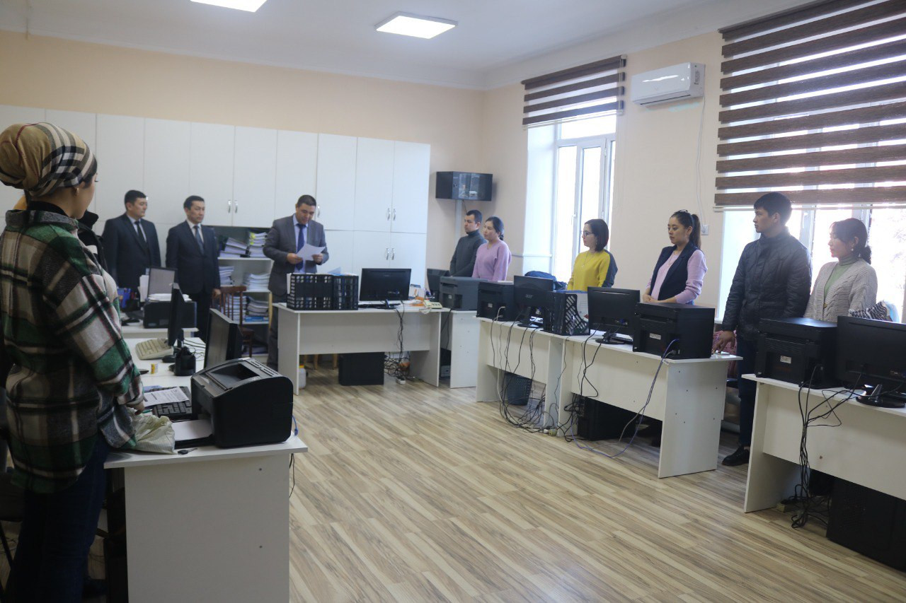 Проректор ОшГУ по учебной работе Замирбек Божонов представил  Руслана Арапбаева и Ибрагима Атабаева сотрудникам структур.