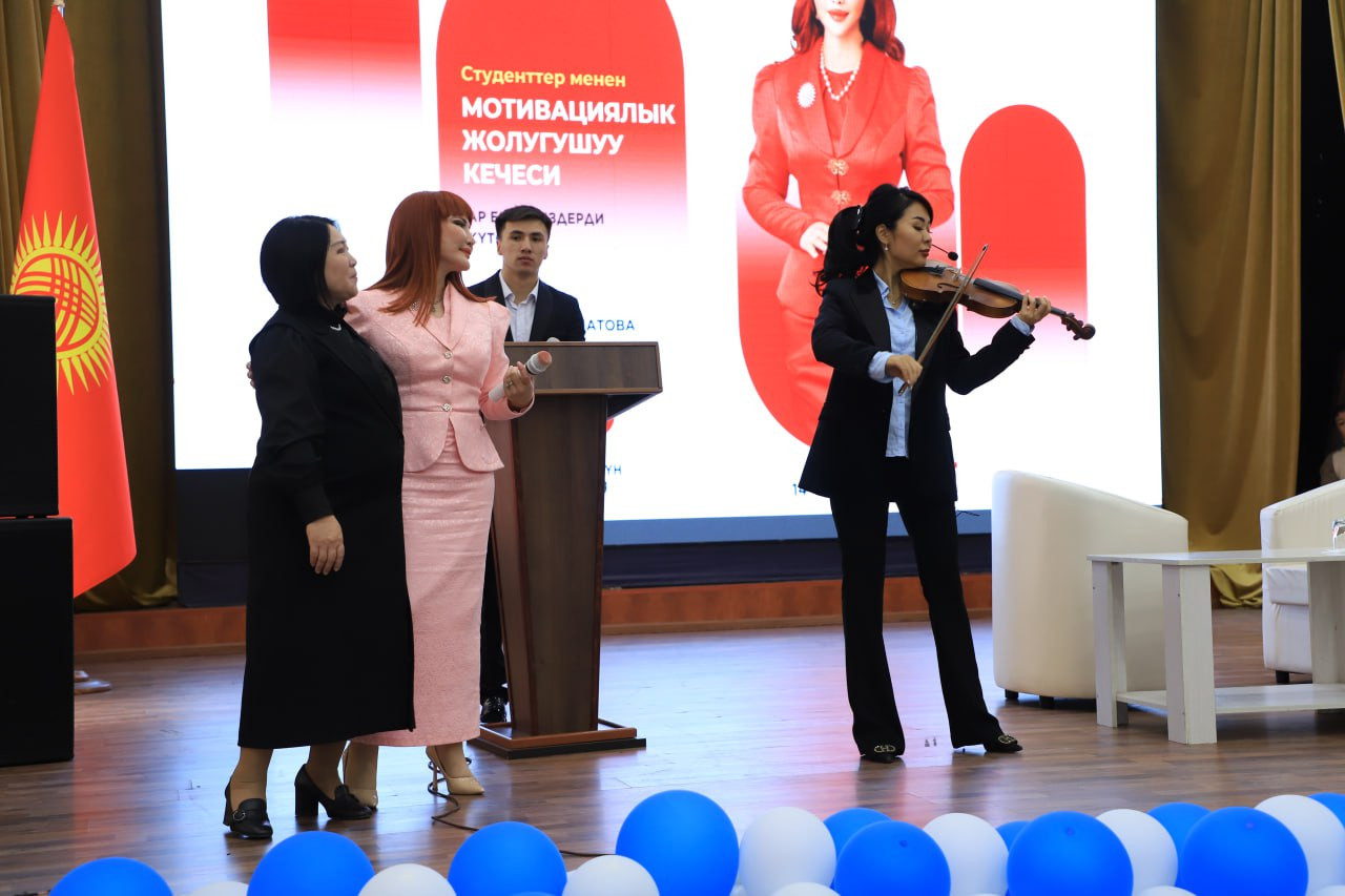 Сегодня, 14 октября в Ошском государственном университете прошла встреча студентов с Ассоль Молдокматовой, заслуженным деятелем культуры двух стран – Кыргызской Республики и Российской Федерации. В рамках встречи, генеральный секретарь Иссык-Кульского Форума имени Чынгыза Айтматова Ассоль Молдокматова поделилась со студентами секретами успешной реализации личных и профессиональных целей, а также рассказала о стратегии личностного роста и о жизненных планах.
