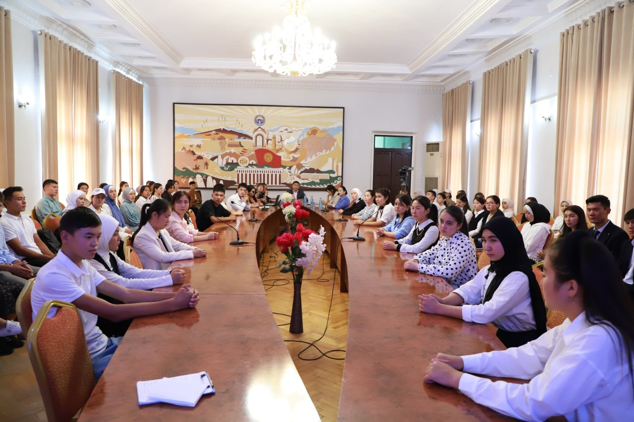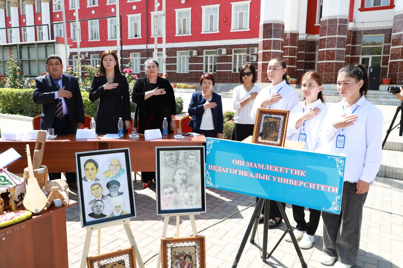 На мероприятии приняли участие проректор по госязыку ОшГУ Мастура Шарипова , руководитель отдела социального развития мэрии г. Ош Нурлан Закиров, преподаватели и студенты.