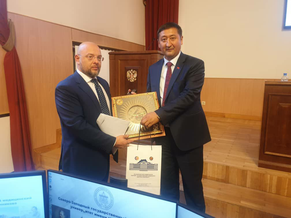 Председатель профкома ОшГУ, доцент кафедры гистологии и патанатомии А.Саттаров, доцент кафедры нормальной и топографической анатомии медицинского факультета Б. Кенешбаев, завкаферой нормальной анатомии, гистологии и физиологии международного медицинского факультета С. Жолдубаев приняли участие в работе международной научной конференции "Проблемы морфологии ХХI века: поиск, диагностика и инновационные технологии обучения" в Северо-Западном государственном медицинском университете имени Мечникова г. Санкт-Петербург. Учёные ОшГУ выступили с тематическими докладами и встретились с руководством университета. Стороны обсудили вопросы сотрудничества и подписали соответствующий меморандум. Документ предусматривает совместную деятельность в сфере реализации образовательных программ, обмена специалистами и студентами, организации гостевых лекций известных учёных, разработки и реализации научных проектов, проведении конференций, семинаров, тренингов, круглых столов и культурных мероприятий.