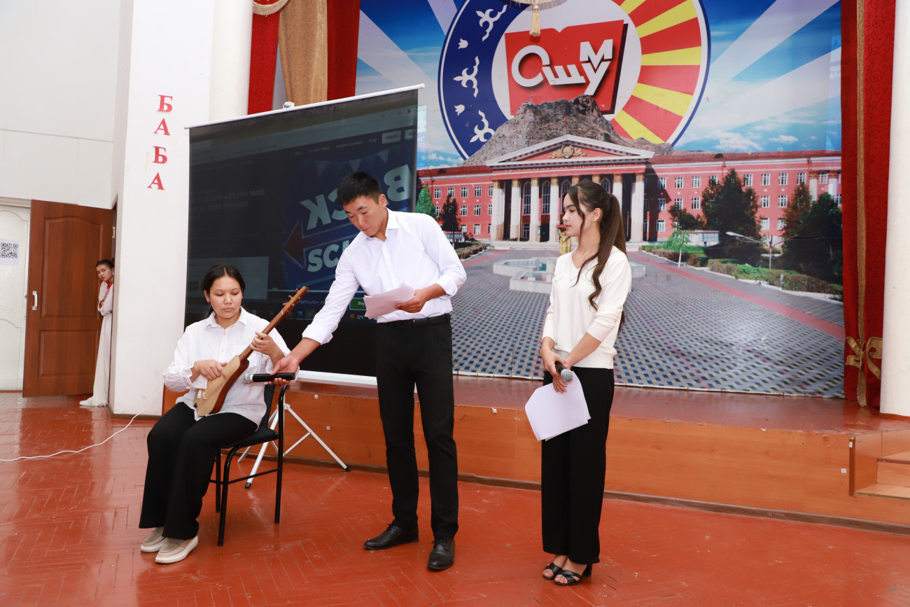 На факультете кыргызской филологии и журналистики прошел конкурс по государственному языку среди студентов ОшГУ, приуроченный к 33-летию принятия закона о государственном языке. Конкурс организован на основе книги "Учебно-дидактические задания", изданный преподавателями кафедры кыргызского языка и литературы №1 Гульзар Мамадиевой и Жазгуль Максутовой, посредством программы Kahoot.