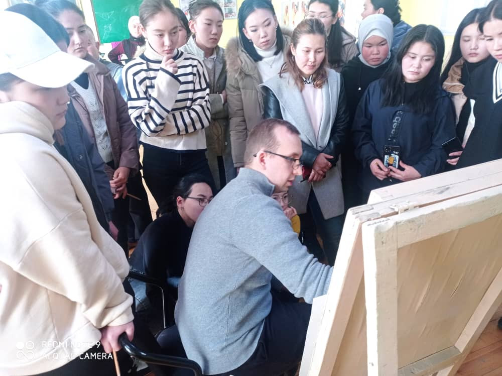 “С художником Матэушем Орловски связались по интернету и пригласили к нам поделиться опытом.Он принял приглашение и прибыл в ОшГУ. Как известный художник он продемонстрировал презентации по особенностям европейского изобразительного искусства, рассказал о видах современной живописи, провел тематический семинар и мастер-классы. Студентым было очень интересно,"- отметил заведующий кафедрой рисования, черчения и труда факультета искусств Абдибали Марипов.