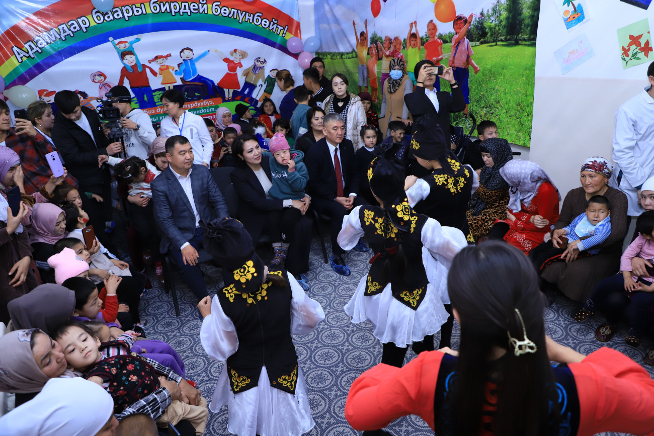 Гости стали свидетелями детских выступлений - песен и танцев, ознакомились с конкурсом детских рисунков. Каждый ребенок получил сладости, подарки,учебные пособия, книжки, а руководитель учреждения - сертификат на 20 тысяч сомов.