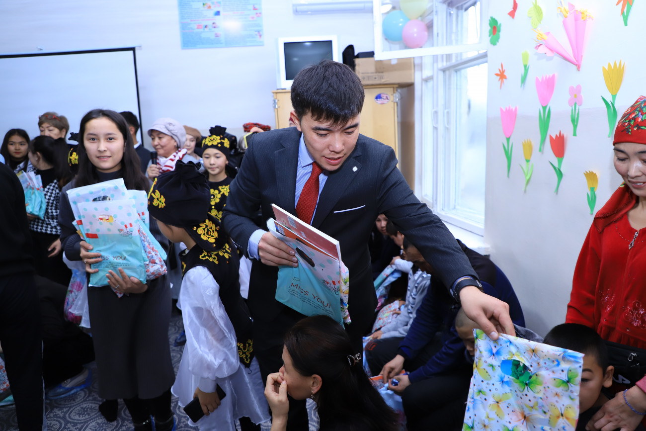 Представители студенческой общественности ОшГУ во главе с ректором Кудайберди Кожобековым и проректором Жылдыз Артыковой посетили реабилитационный центр для детей с ограниченными возможностями здоровья и опорно-двигательными нарушениями г. Ош.
