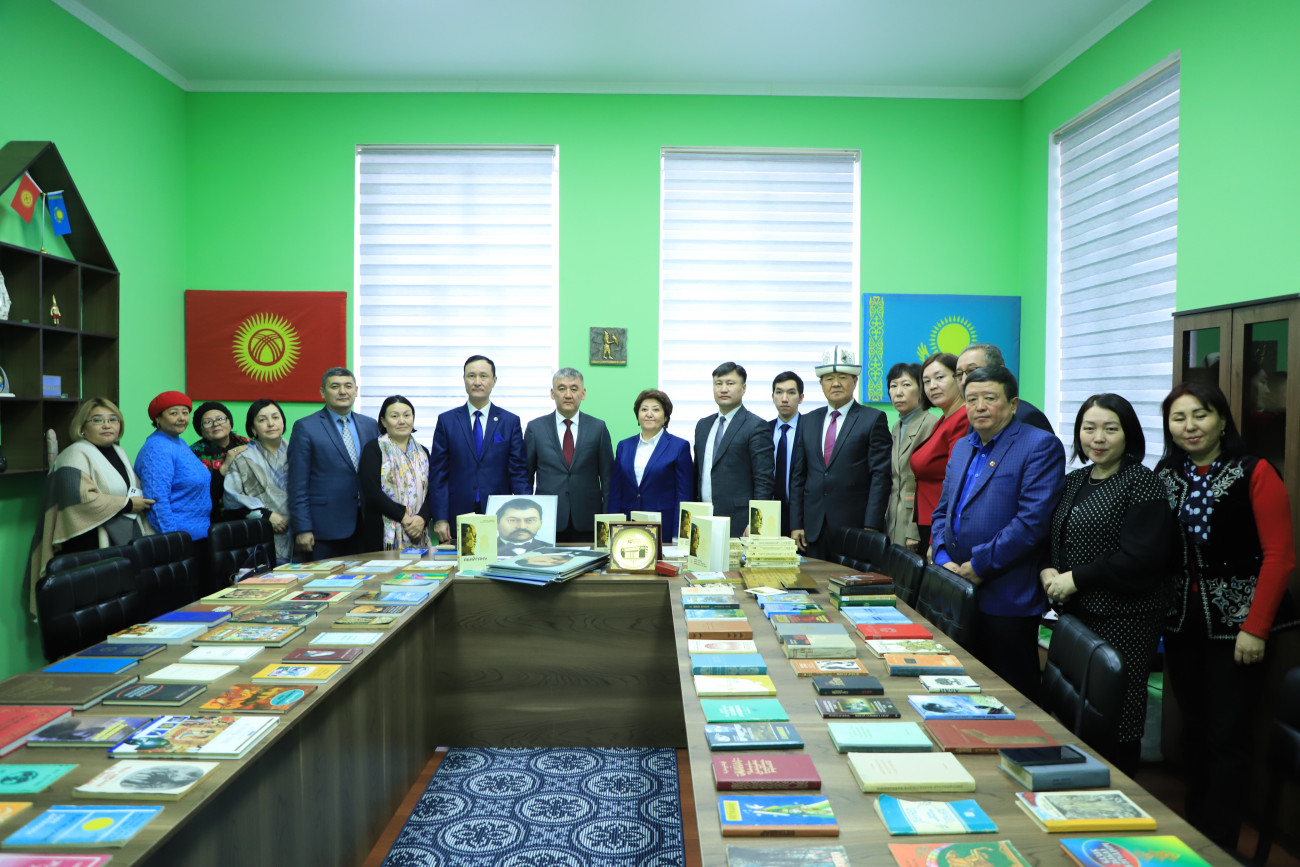 Центр создан по инициативе и активном участии заведующего кафедрой кыргызской литературы, доцента Абдимиталипа Мырзакметова, который передал центру из личной библиотеки и коллекции около 150 книг, 300 наборов открыток и 200 нагрудных значков по казахской литературе, истории и культуре.