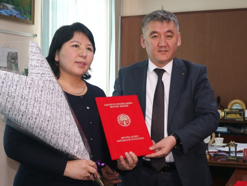 Письмо было подписано заместителем спикера ЖК Аидой Касымалиевой по случаю Международного женского дня 8 Марта. Благодарственное письмо с пожеланиями дальнейших успехов вручил обладательнице ректор ОшГУ К. Кожобеков.