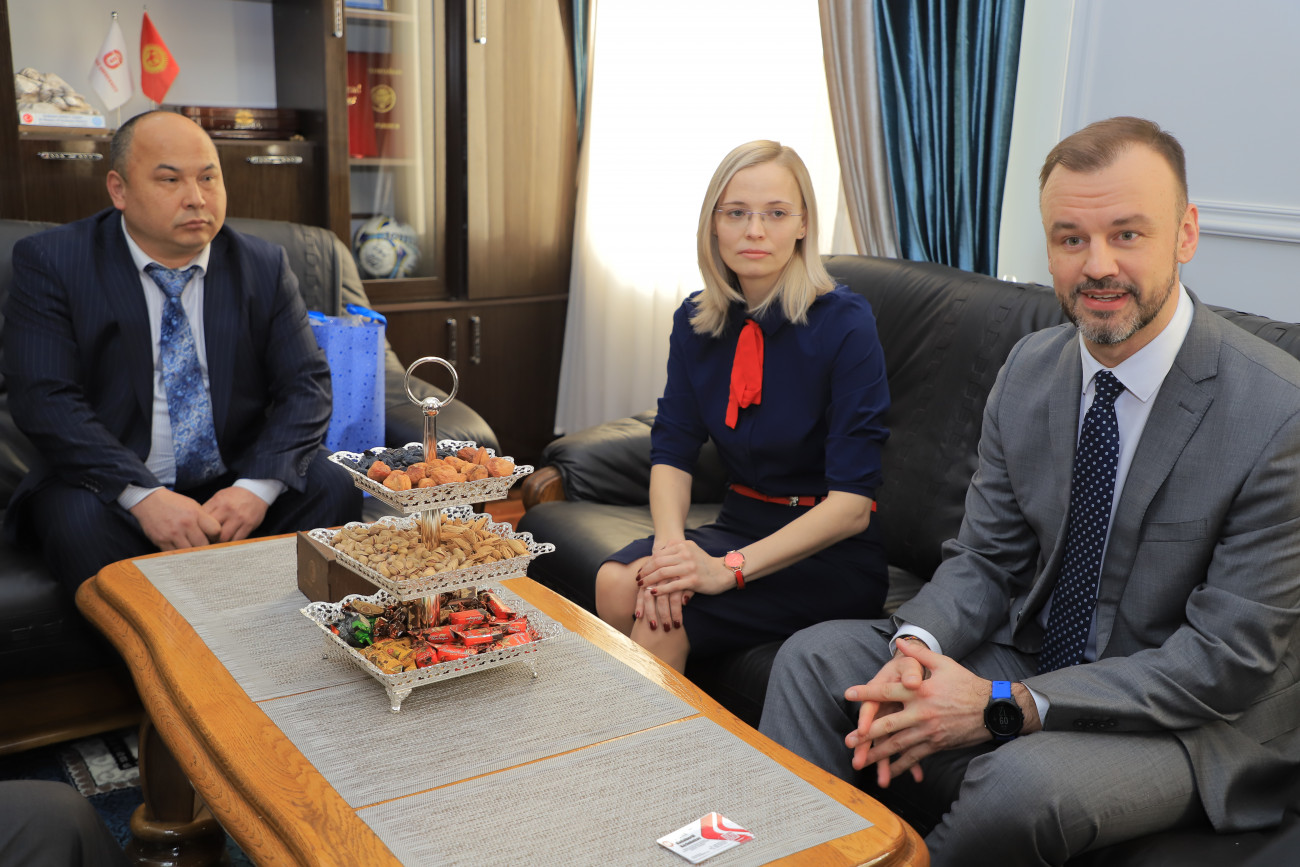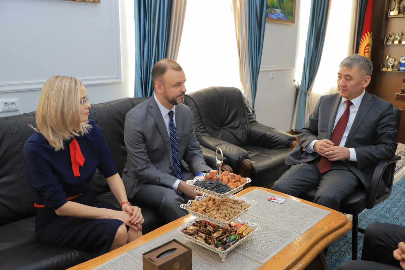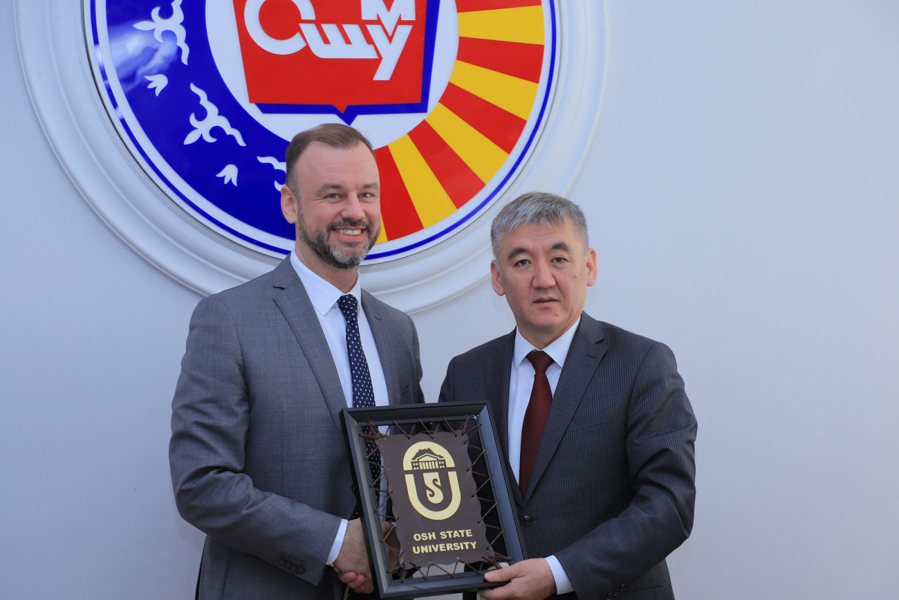Делегация Уральского государственного медицинского университета прибыла в ОшГУ с рабочим визитом. Проректор по перспективному развитию и международным связям УГМУ Михаил Флягин и декан факультета иностранных студентов УГМУ Елена Богданова встретились с руководством ОшГУ во главе с ректором Кудайберди Кожобековым.