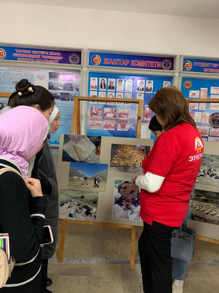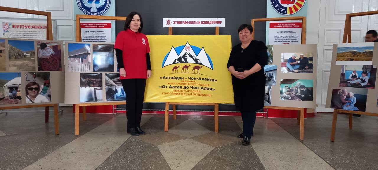 В главном корпусе ОшГУ прошла фотовыставка материалов этнографической экспедиции, проведенной в селах Дароот-Коргон, Кашка-Суу, Сары-Могол, Жекенди, Жаш-Тилек, Чак, Кара-Тейит, Карамык, Жар-Башы Чон-Алайского района Ошской области, в которой активное участие приняли члены студенческого клуба "Этнограф".