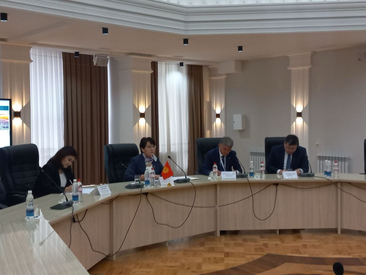 В Высшей школе международных образовательных программ ОшГУ состоялась встреча министра образования и науки КР Кендирбаевой Догдуркуль Шаршеевны, заместителя министра Абазбек уулу Расула с заместителем министра просвещения РФ Грибовым Денисом Евгеньевичем и начальником управления внешних связей ФГБОУ ЦМС Министерства просвещения России Аверковой Еленой.