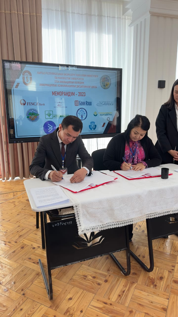 21 октября 2023 года в инновационном колледже STEM ОшГУ состоялось подписание меморандумов о сотрудничестве с предприятиями и учреждениями по специальностям прикладная информатика и автоматизированные системы обработки информации и управления.