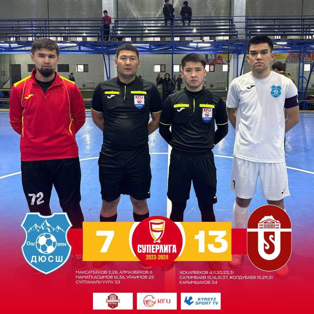 27 января завершились финальные встречи в предварительном туре Суперлиги страны. Команда по мини футболу ОшГУ "Университет" обыграла во втором круге команду "Спорткомитет” со счетом 13:7. "Университет", сохранив позицию лидера, получила путевку на полуфинал.