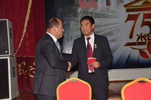 За тесное сотрудничество и плодотворную работу удостоин нагрудных знаков «Отличник образования Кыргызской Республики», «Алтынсарин» Министерства образования и науки Казахстана, признан победителем разных номинаций «Лучший преподаватель университета Назарбаева», стал обладателем звания «Почетный профессор» Таласского госуниверситета. Признание и достойная оценка твоего труда придают силы и стимул для дальнейшей плодотворной работы.