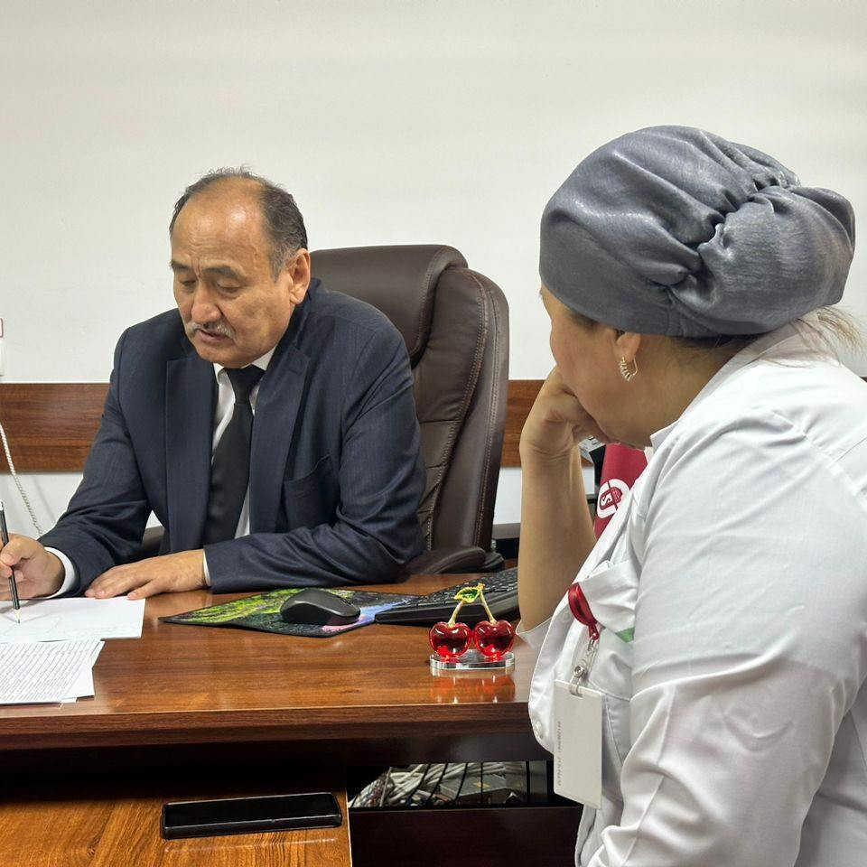 Министр здравоохранения Алымкадыр Бейшеналиев посетил медицинскую клинику ОшГУ. Он ознакомился с ходом подготовки к операции по трансплантации печени и встретился со специалистами клиники.