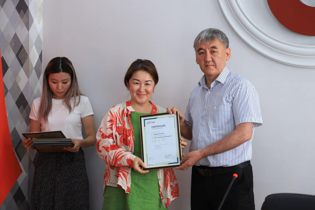 На вручении сертификатов принял участие ректор ОшГУ Кудайберди Кожобеков, который отметил о необходимости усвоения английского языка на должном уровне.