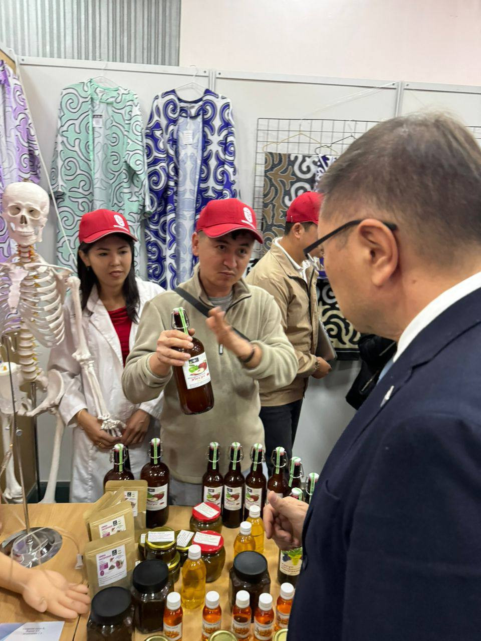 Выставлены сельско-хозяйственная и семейно-бытовая техника, продовольственные, канцелярские товары, швейные изделия, продукция народного промысла и туризма , вузовская продукция. ОшГУ представляет студенческие стартапы- этно одежда “ZURA” , “Медицинские процедуры”, “Кыргызские лекарственные травы", “Smart Barrier”, “AgaStore”, “Brаnd OshSU”. Руководитель торгово-промышленной палаты КР Темир Сариев ознакомился с молодежными проектами ОшГУ и пригласил авторов проектов для участия на выставке «Кыргызстан ЭКСПО – 2024», которая будет проходить 25-27 октября в Бишкеке.