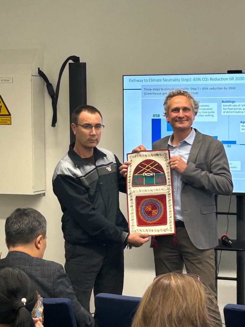 Участники ознакомились с работой немецкого университета по получению энергии из природных источников - солнечного света и ветра. Наши специалисты выступили с презентацией о деятельности ОшГУ в этом напаравлении, установлении солнечных панелей на крышах учебных корпусов и обсудили вопросы сотрудничества с другими университетами.