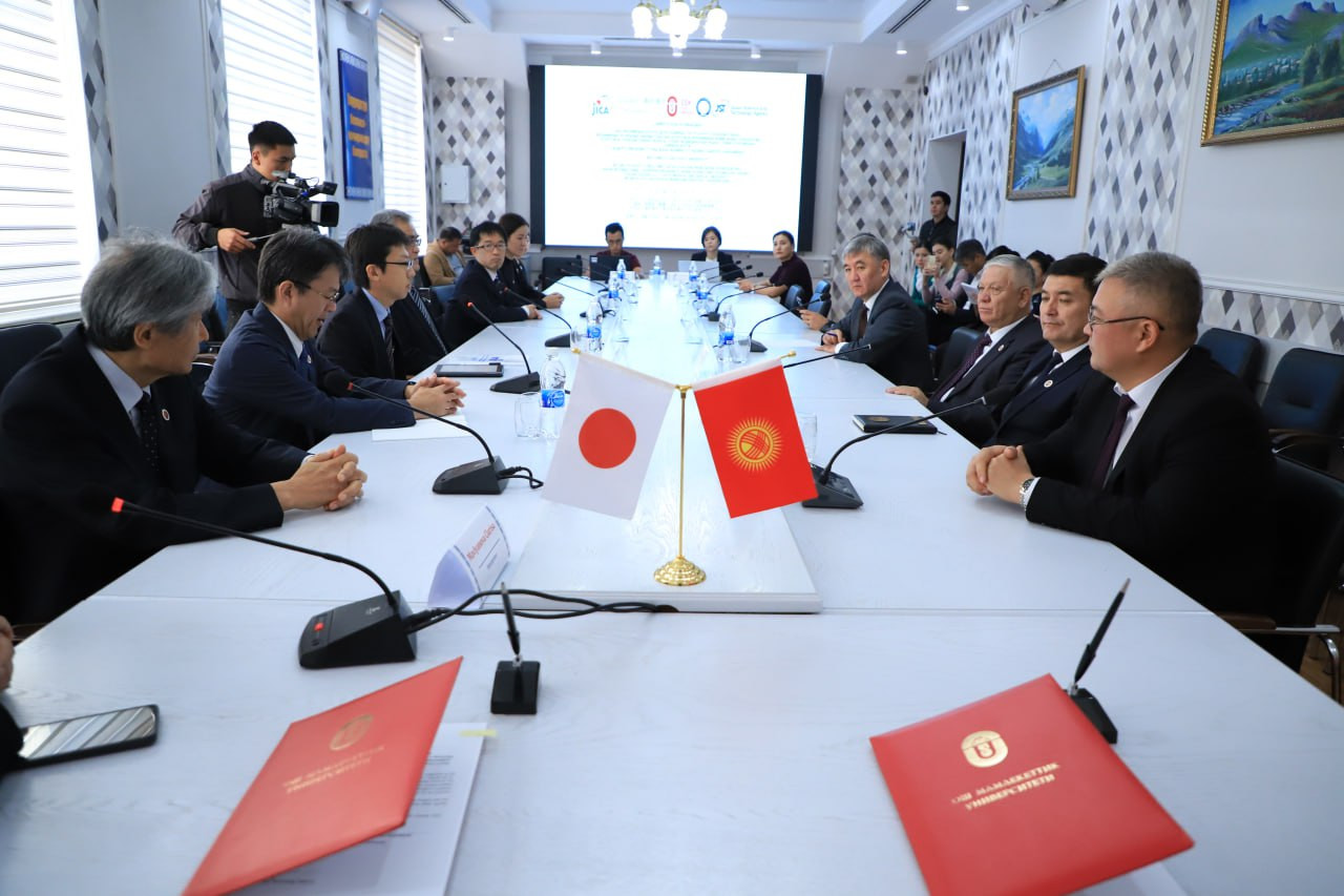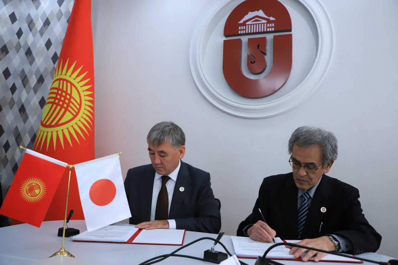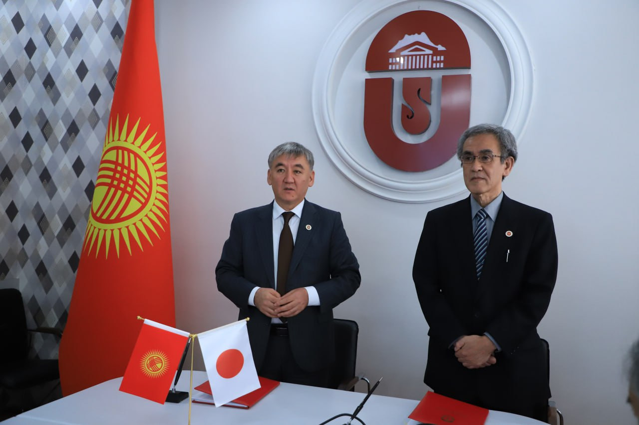 Сегодня, 8 октября в ОшГУ состоялось подписание договора о сотрудничестве по реализации проекта "Развитие системы оценивания загрязнения воздуха и создание центра исследований загрязнения воздуха на основе спутниковых сведений и регионального химического транспортного моделирования" между Ошским государственным университетом японским агентством международного сотрудничества. Подписи поставили ректор Кудайберди Кожобеков и представитель агентства, руководитель отдела развития человеческого потенциала, господин Мицухиро Ушио.