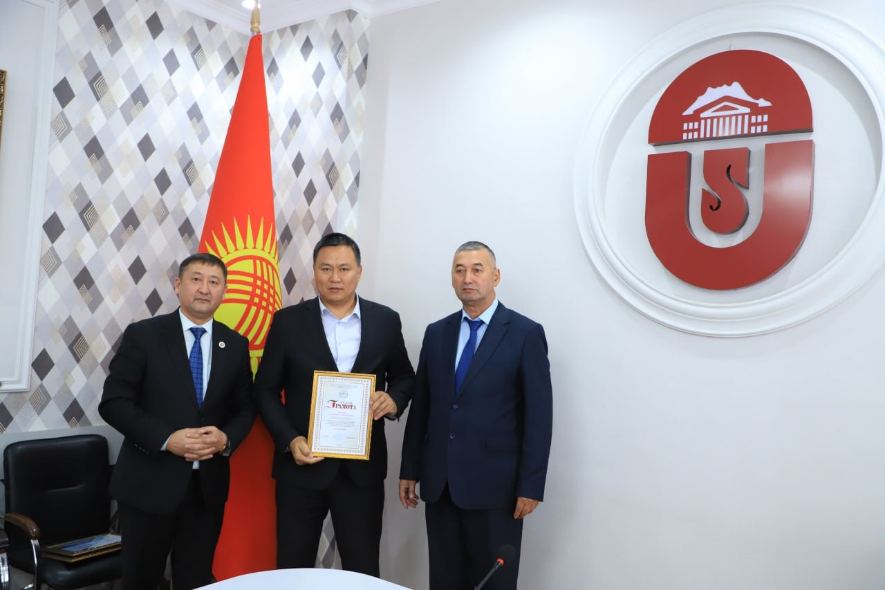 Председатель центрального комитета профсоюзного объединения работников образования и науки Мусабай Примкулов и председатель профкома ОшГУ поздравили с профессиональным праздником профессорско-преподавательский состав ОшГУ.
