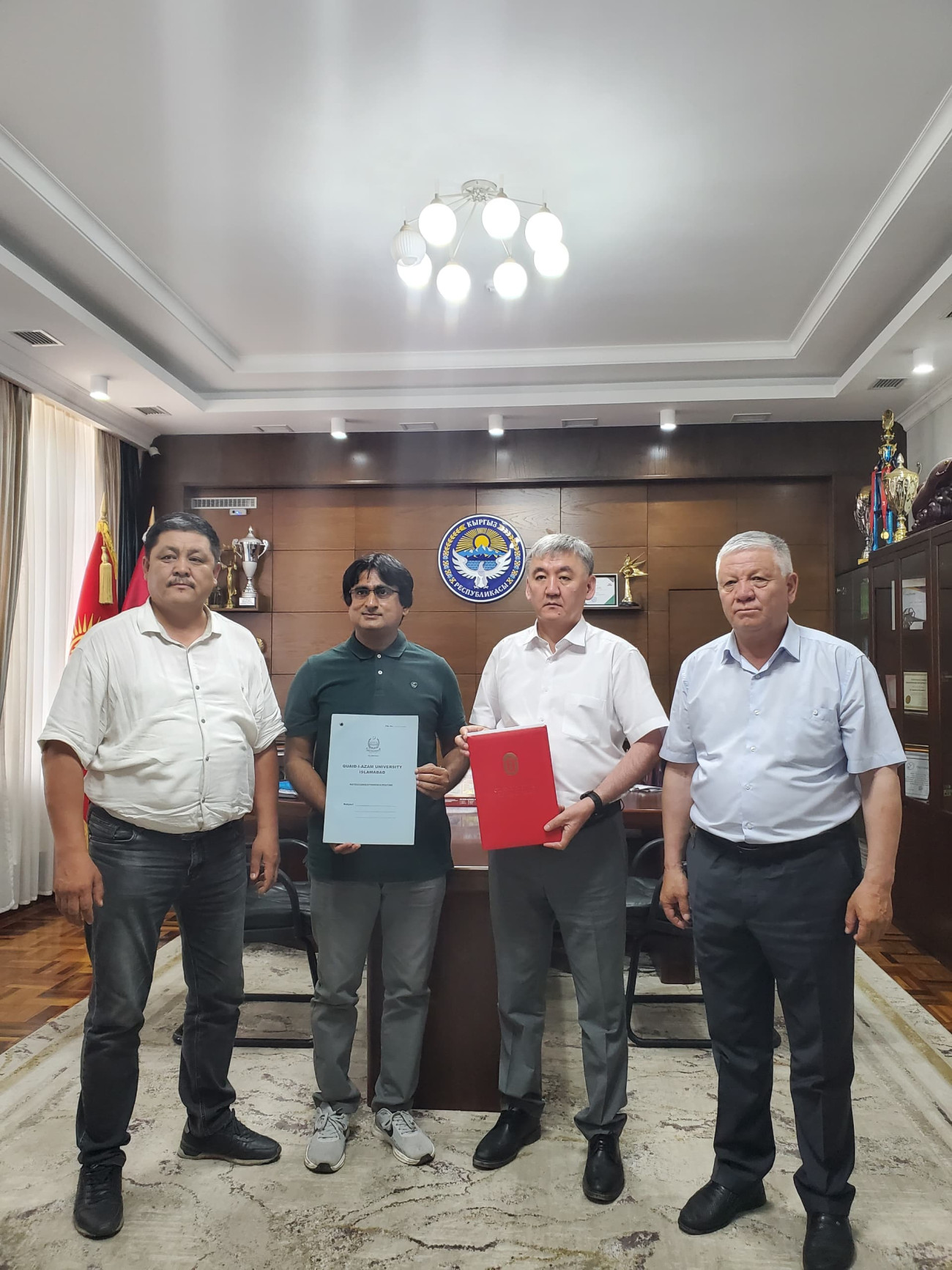 23 мая Ошский государственный университет и Университет Каид-и-Азам Пакистана подписали меморандум о сотрудничестве. В мероприятии приняли участие ректор Кудайберди Коджобеков и профессор университета Мухаммад Зафар.