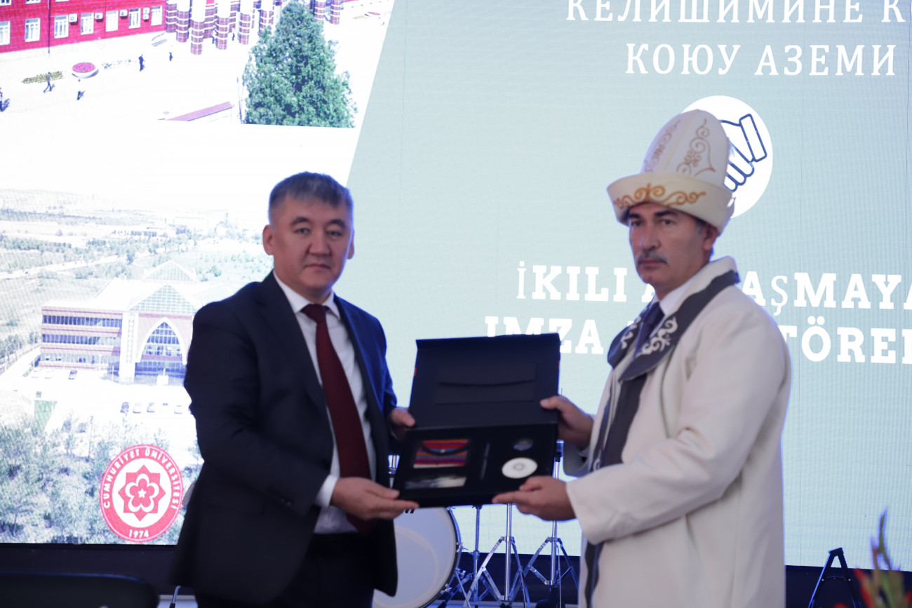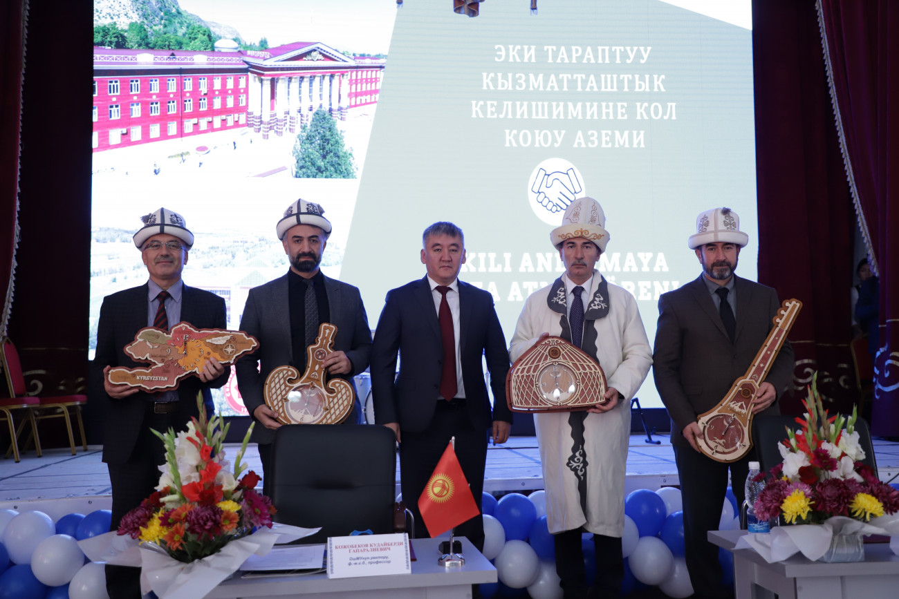 В ОшГУ состоялась церемония подписания договора о сотрудничестве с университетом Сивас Джумхуриет. С турецкой стороны приняли участие ректор университета профессор Алим Йылдыз, проректоры-профессор Үнал Кылыч, профессор Хакан Йекбаш, руководитель департамента международных связей, профессор Али Аксу. Со стороны ОшГУ документ подписал ректор Кожобеков, присутствовали руководители университета, факультетов, преподаватели и студенты.