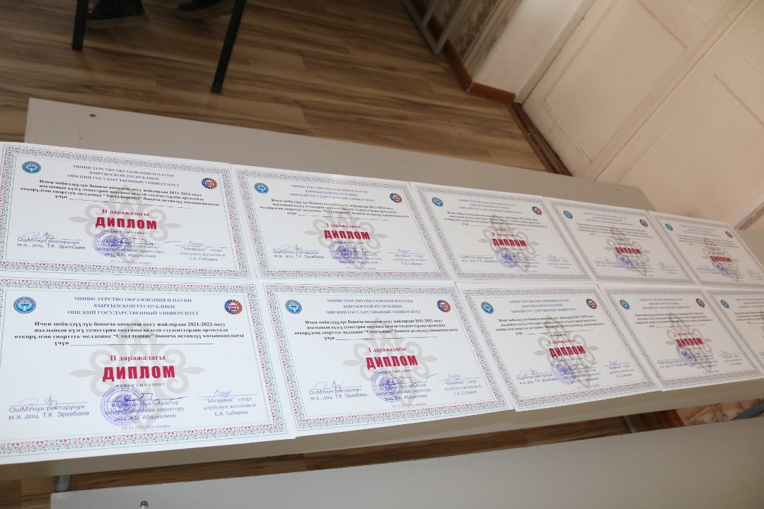 Департамент международных связей ОшГУ организовал спортивный турнир для студентов, прибывших в ОшГУ на обучение по программе академической мобильности соревнованиях приняли участие студенты из  Академии госуправления при Президенте КР, Иссык-Кульского госуниверситета, Таласского госуниверситета. ЖАГУ, Международного университета им. К. Токтомаматова,, КУГУ, БатГУ. Студенты соревновались по таким видам спорта как волейбол, шахматы, тогуз коргоол,  Победители и призеры удостоились специальных дипломов и грамот от организаторов.
