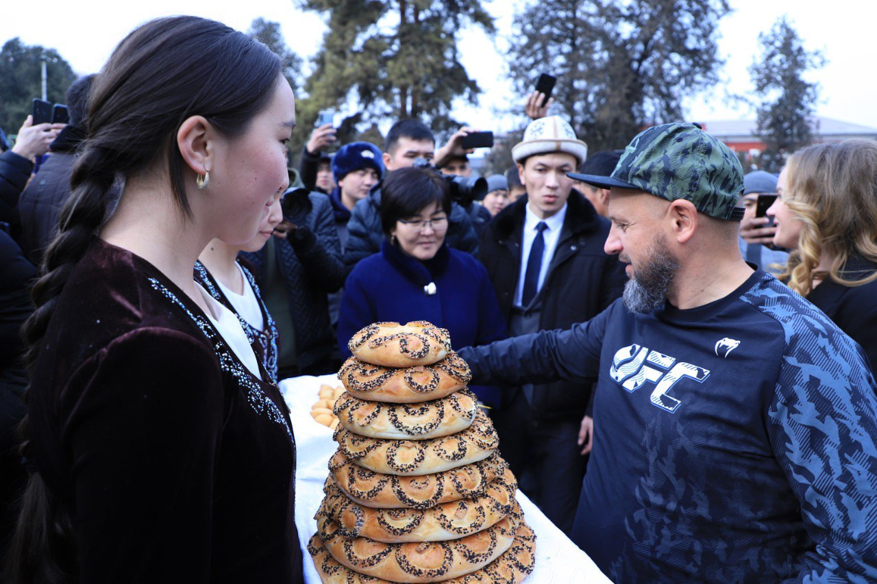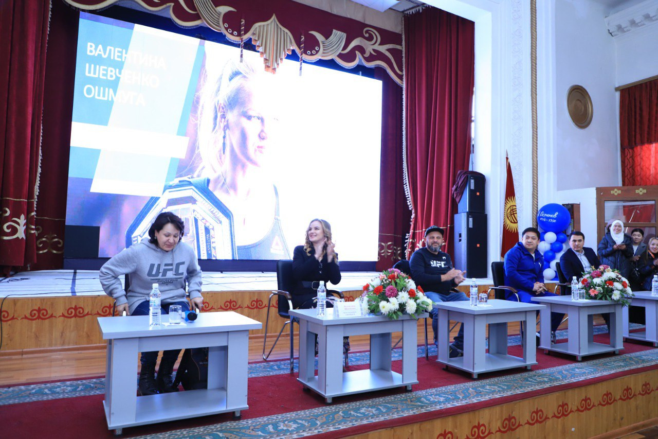 13 декабря ОшГУ посетила и встретилась со студентами чемпионка UFC среди женщин в наилегчайшей весовой категории Валентина Шевченко..Спортсменку сопровождали тренер Павел Федотов и мама.