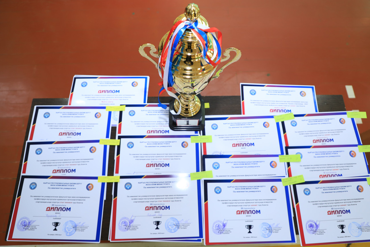 В командном зачете первое место занял индустриально-педагогический колледж, 2 место - медицинский колледж и 3 место - факультет бизнеса и менеджмента. Церемония награждения состоялась 10 февраля, в которой приняли участие ректор ОшГУ К. Кожобеков, председатель профкома А.Саттаров и преподаватели университета. Команды-победители, лучшие игроки были награждены дипломами, кубками, денежными призами вуза и профсоюзного объединения. Призовой фонд спартакиады составил 70 тысяч сомов.