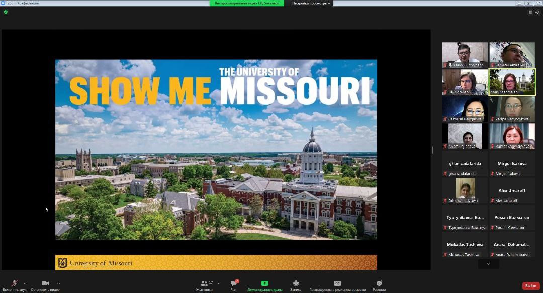 В ОшГУ прошла онлайн встреча с представителями американского университета Миссури. На встрече приняли участие с американской стороны - вице-проректор международных программ, директор международного центра, профессор Мэри Стегмайер и ег помощники, со стороны ОшГУ - директор департамента международных связей А. Абдувалиев, руководители заинтересованных факультетов и соответствующих структур университета.