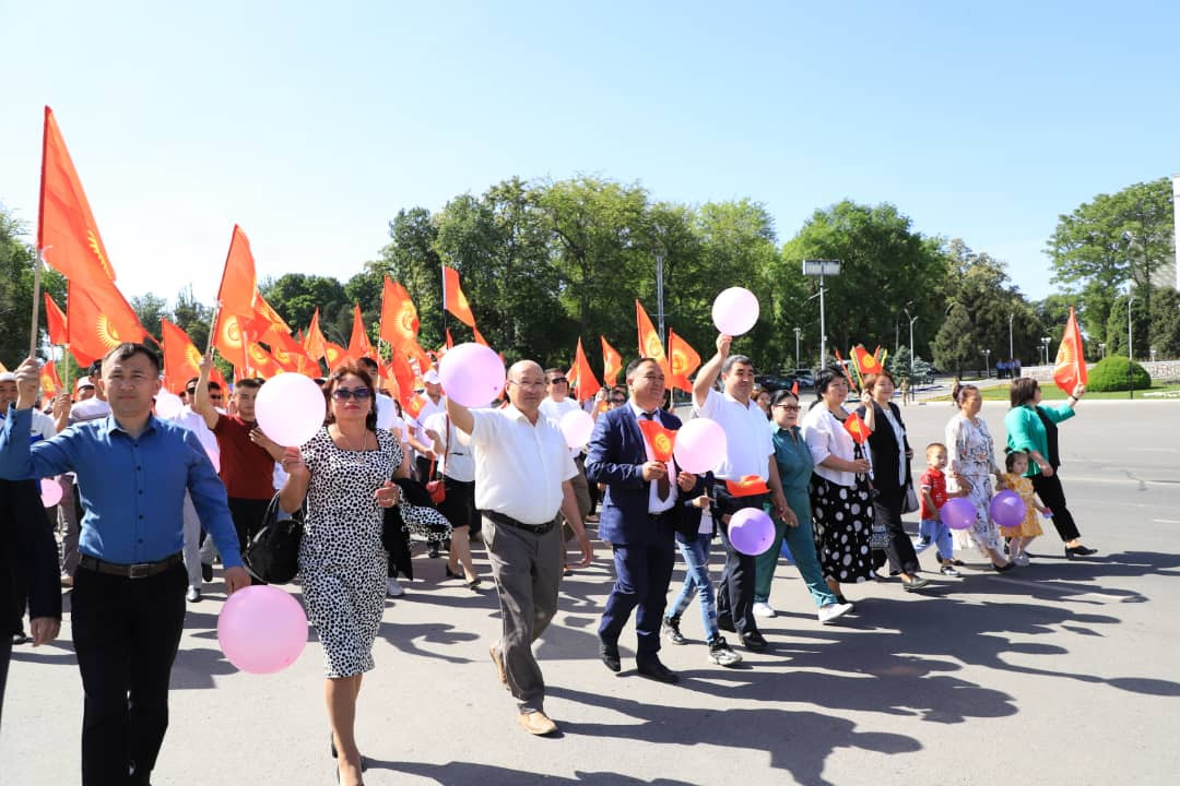 На городской площади состоялась праздничная демонстрация в честь 1 мая - Дня международной солидарности трудящихся, на которой активное участие принял коллектив Ошского государственного университета.