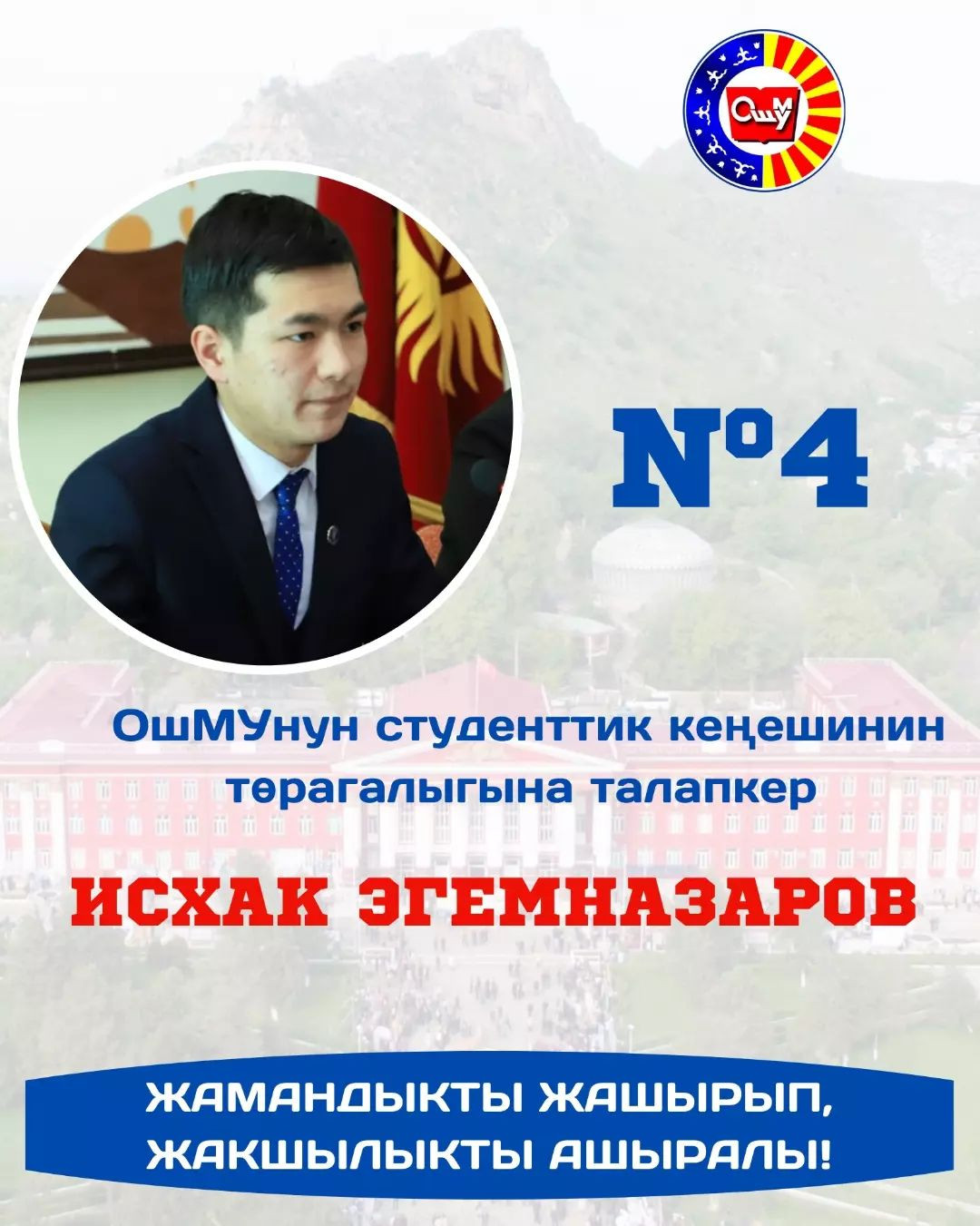 №4 - студент 2 курса факультета кыргызской филологии и журналистики Исхак Эгемназаров.