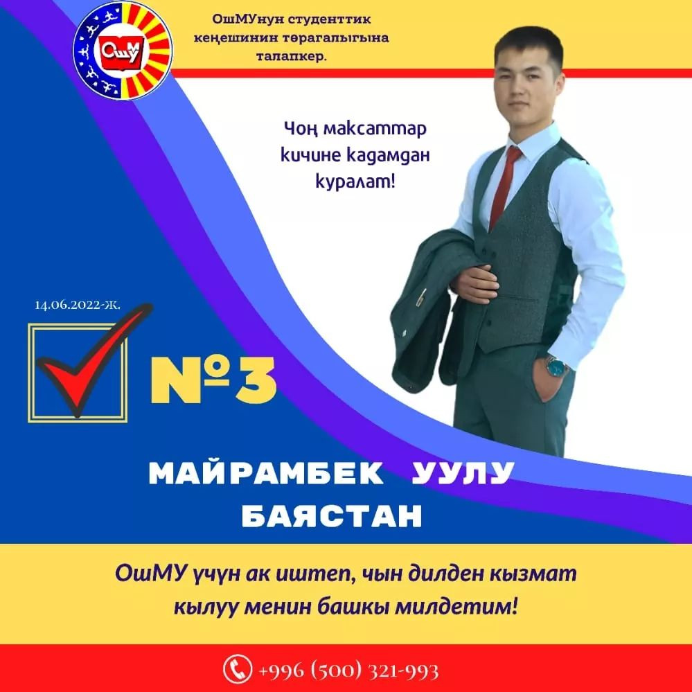 №3 -студент 2 курса факультета МИТ Майрамбек уулу Баястан.