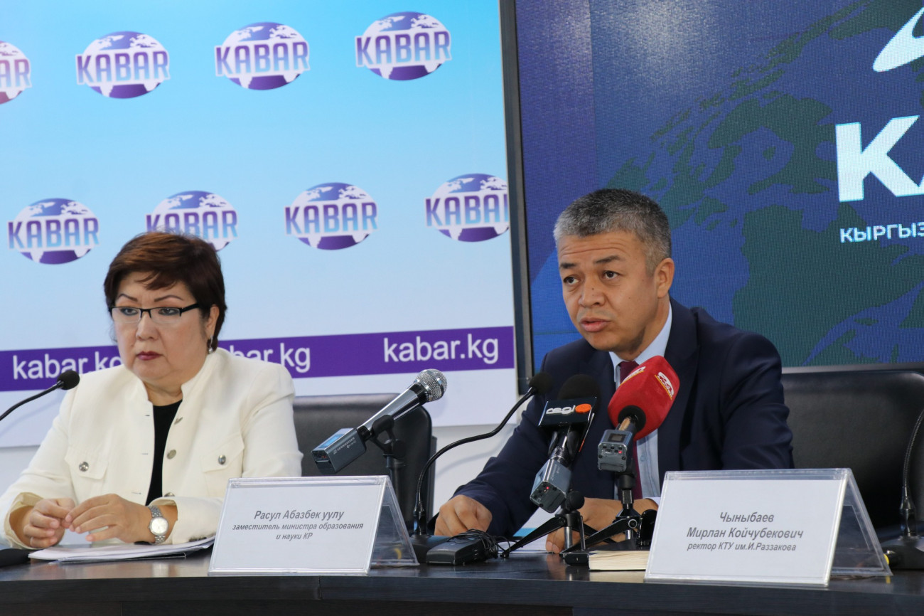 Basın toplantısında Eğitim ve Bilim Bakan Yardımcısı Rasul Abazbek Uulu, Kırgız Devlet Teknik Üniversitesi Rektörü Mirlan Chynybaev ve Kırgız Cumhuriyeti Dışişleri Bakanlığı Diplomatik Akademisi rektörü Chinara Adamkulova katıldı..