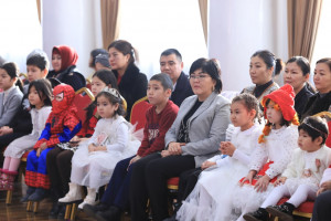 Üniversite rektörü Kudaiberdi Kozhobekov, sendika başkanı Absamat Sattarov, öğrenci topluluğu rector yardımcısı Zhyldyz Artykova çocukların elini tutarak şarkılar söyleyerek kutlamanı açtı. Üniversite rektörü çocukları tebrik edip onlara sağlık ve aydın bir gelecek diledi.